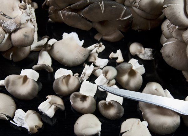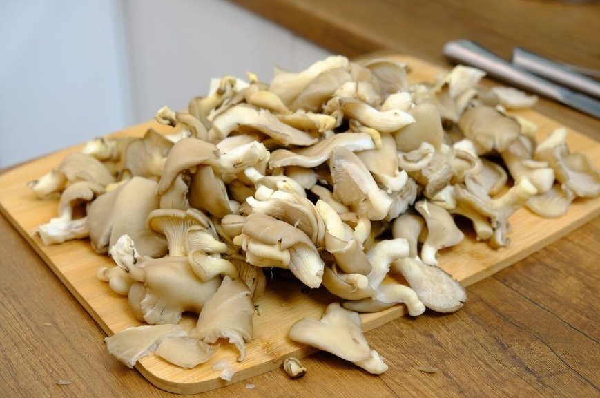 - Nomazgājiet, notīriet un sasmalciniet austeru sēnes.