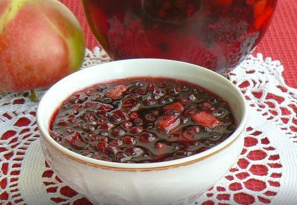 No brūklenēm un āboliem vai bumbieriem var pagatavot biezu ievārījumu. Jums būs nepieciešami 1 kg brūkleņu, 500 g augļu un 300 g granulētā cukura.