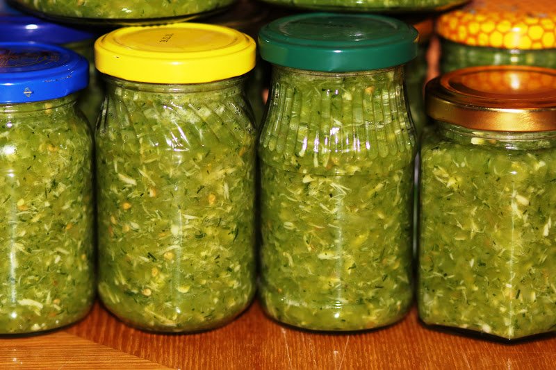 Vienkāršas metodes ietver izejvielu rūpīgu sasmalcināšanu. Blenderis to padara vienkāršu, kā rezultātā iegūst ātru un vienkāršu sāļu uzkodu. Nesterilizēts ēdiens saglabā savu garšu ledusskapī 3–4 mēnešus. Tomēr, ja to ievietojat vakuuma iepakojumā (vai biezos celofāna maisiņos) un uzglabājat saldētavā, uzglabāšanas laiks ievērojami pagarinās.