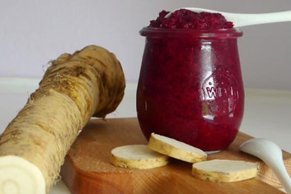 - Ķiplokus sasmalcina, mārrutkus un piparus izlaiž caur gaļas mašīnā.