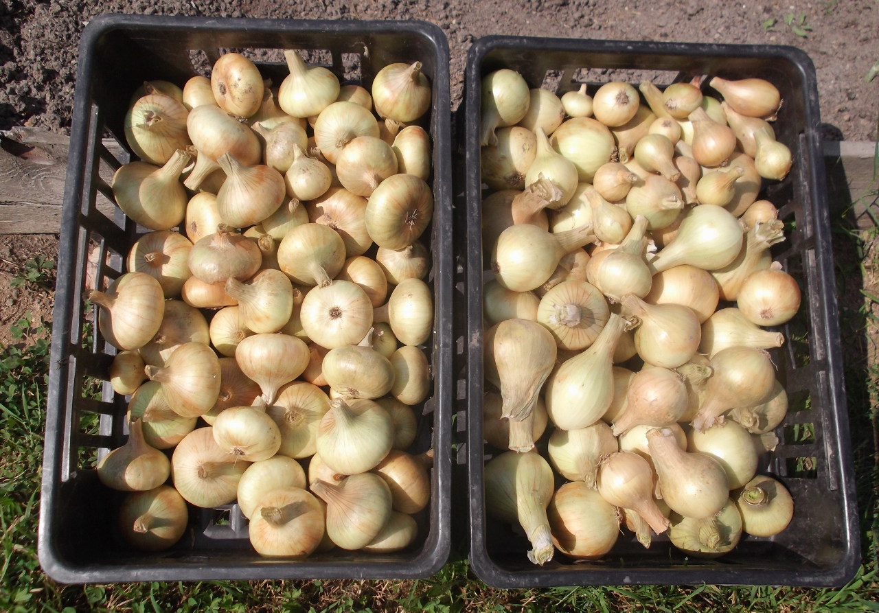 Zaļas lapas un jaunie rāceņi tiek patērēti visu vasaru, bet pilna raža ir tad, kad sīpoli ir nogatavojušies. To norāda lapu dzeltēšana, žūšana un veldrēšanās, kakliņa izžūšana un sīpolu ārējo zvīņu raksturīgā krāsa. Nav ieteicams atstāt nogatavojušos sīpolus zemē — tie var sākt atkal augt vai sapūt pēc nākamā lietus.