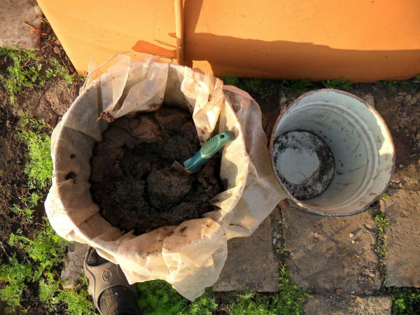 - Sajauciet spaini ūdens ar vistas mēsliem (1 l).