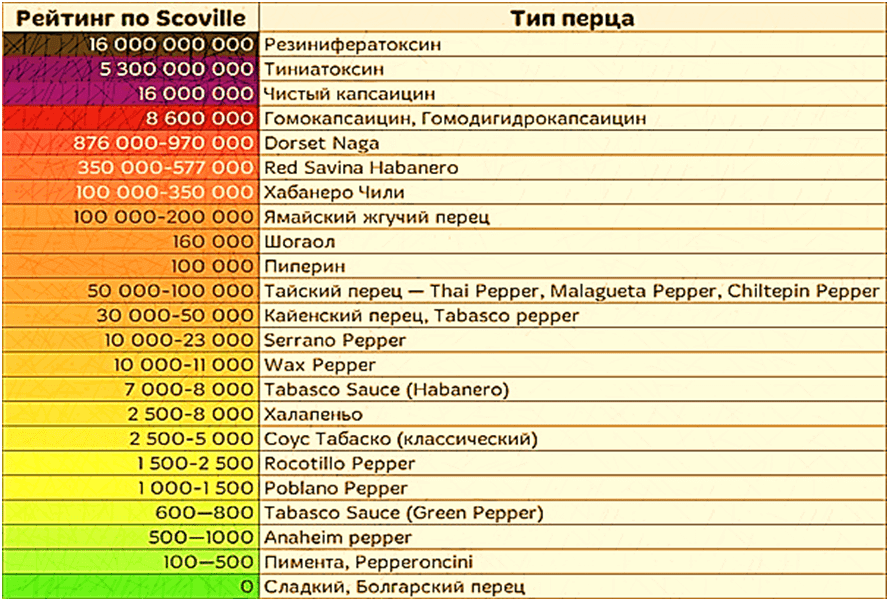 Attīstoties čili piparu tirgum, ir radusies nepieciešamība kvantitatīvi noteikt to asuma līmeni. Viela kapsaicīns ir tieši atbildīga par dedzināšanu, sāpēm un karstumu, ko izjūt cilvēka receptori.
