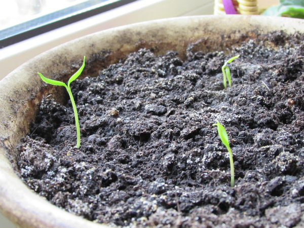 - Iesējiet sadīgušās čili sēklas seklā kastē.