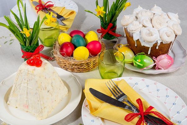 Krāsotas olas un Lieldienu kūka (kuličs) ir visizplatītākie svētku atribūti.