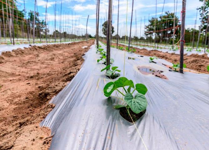 Visbiežāk kartupeļu, zemeņu un tomātu mulčēšanai izmanto neaustu materiālu un plēvi.
