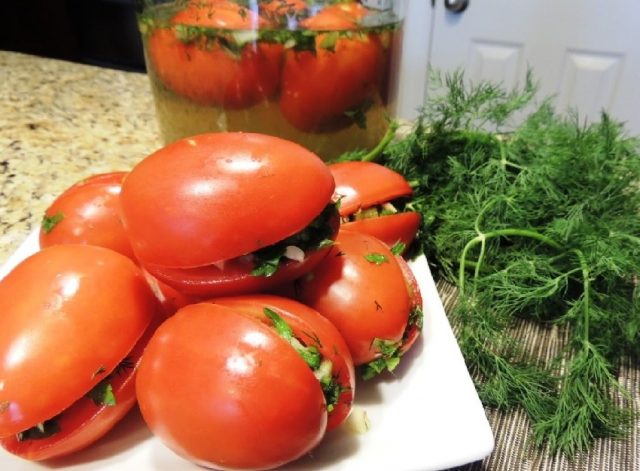 - Izvēlieties mazus, gaļīgus tomātus ar stingru mizu, lai tie gatavošanas laikā nedeformētos. Piemērotas šķirnes ir ‘Niagara’, ‘Slivka’, ‘Laura’, ‘Moskovsky Delikates’, ‘Sibirskaya Troika’ un ‘Pertsevidny’.