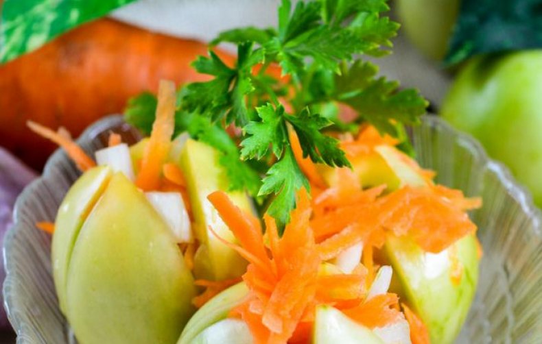 Šajā video ir aprakstīta recepte gardas un aromātiskas uzkodas pagatavošanai, izmantojot zaļos tomātus.
