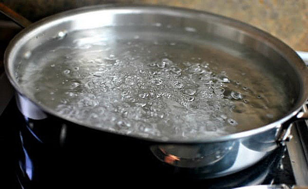- Ogas pārlej ar verdošu ūdeni un atstāj uz 15 minūtēm, lai miziņa pārsprāgtu, pēc tam ūdeni nokāš.