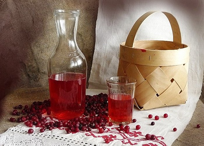 Ir receptes, kā ātri (24 stundu laikā) pagatavot dzērveņu liķieri. Šajā gadījumā jums būs nepieciešams (vienādās proporcijās):