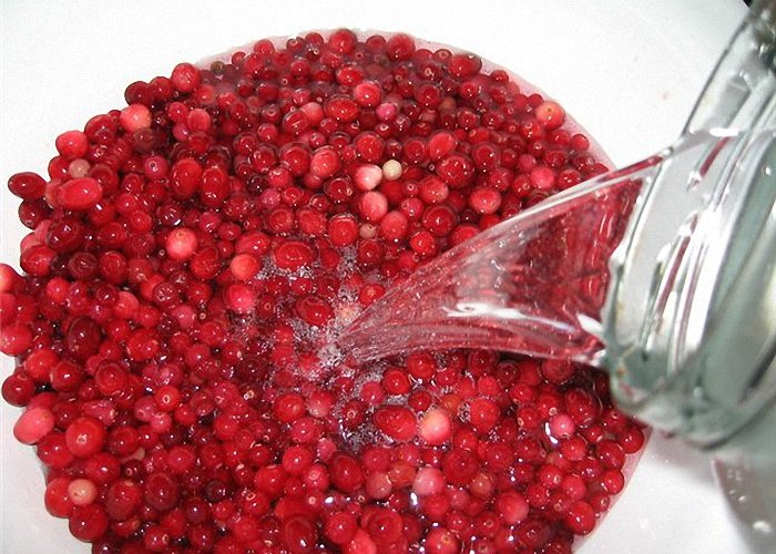 Derēs svaigi plūkātas dzērvenes vai iepriekš sablendētas dzērvenes. Uz katru dzērveņu tasi izmantojiet tasi cukura un litru kandžas. Recepte ir šāda: