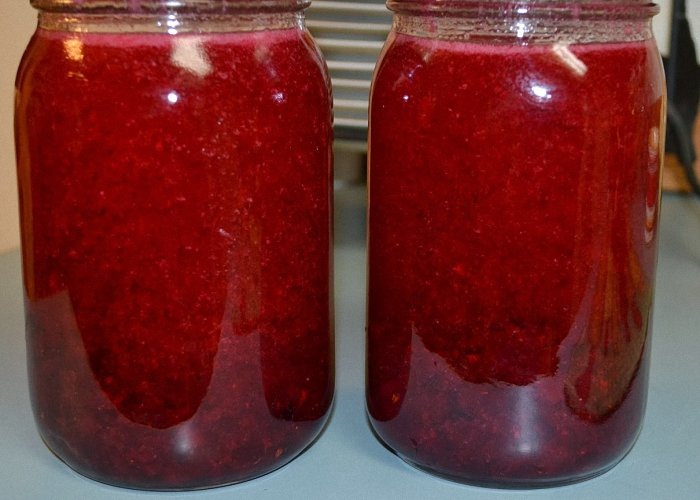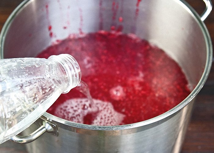 - Iegūto sulu sajauciet ar 500 g rozīņu biezeņa. Pievienojiet saldo sīrupu (1,2 kg granulētā cukura uz litru), pēc tam pievienojiet vēl 1 litru ūdens.