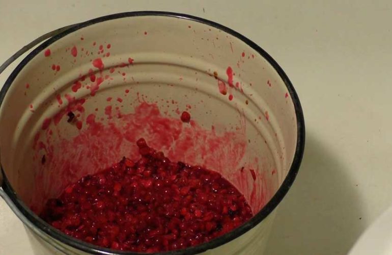 - Sasmalciniet 500 g viburnum un pīlādžu ogu.