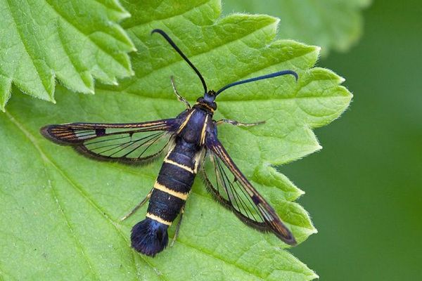 Šis mazais tauriņš ar caurspīdīgiem spārniem un pārmaiņus tumšām un gaišām svītrām uz ķermeņa nedaudz atgādina lapseni. Tas izšķiļas divas nedēļas pēc jāņogu ziedēšanas un izdēj 50–60 olas mizas spraugās 40–70 cm augstumā. Pēc 10–15 dienām kāpuri izšķiļas, ierokas stumbros un izveido garus tuneļus, līdz pat 50 cm garus, apēdot serdi. Tie tur arī pārziemo. Dzīves laikā kāpurs var bojāt vairākus dzinumus, sākot ar jauniem dzinumiem un pārejot uz nobriedušākiem. Vēl nav selekcionētas ērkšķogu vai jāņogu šķirnes, kas būtu izturīgas pret stikla tārpu.