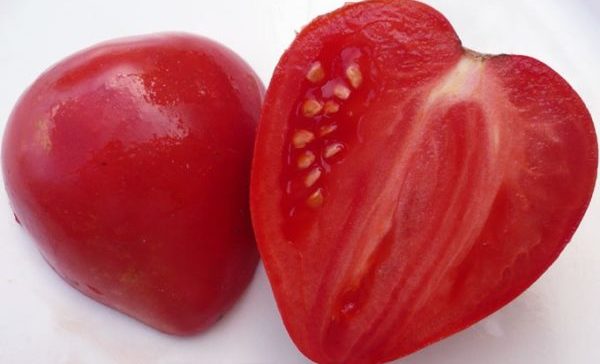 Augļi ir veidoti kā sirds vai milzīga zemene. Tie ir lieli, gaļīgi, ar patīkamu aromātu un maigu, saldu garšu. Nogatavojušies tomāti ir piesātināti rozā-sarkanā krāsā. To miziņa ir diezgan bieza, kas novērš plaisāšanu. Tomātiem ir maz sēklu kameru, padarot tos par lielisku salātu šķirni.