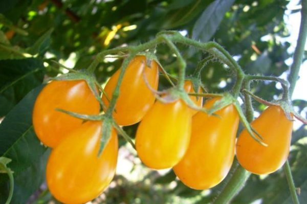 Pieder ķiršu šķirnei. Neskatoties uz nelielo izmēru, šīs šķirnes tomāti ir ļoti saldi. To miziņa ir medus krāsā. Augļi ir asaras formas. Tie aug lielos ķekaros (līdz 15 tomātiem) uz krūma. Katrs tomāts sver aptuveni 30 g.