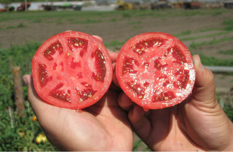- Mīkstums un miziņa ir stingras konsistences. Šīs īpašības padara tomātus lieliski transportējamus.