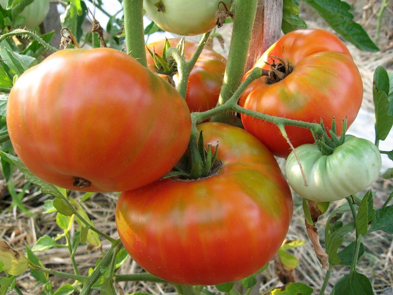 Sibīrijas trompete. Šo lielaugļu šķirni var audzēt gan siltumnīcās, gan ārā. Tās gardie, saldie augļi sver līdz 700 gramiem un ir tumši sarkanā krāsā.
