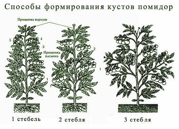 Tiek uzskatīts, ka noteiktas tomātu šķirnes var augt bez sānu dzinumiem. Tomēr tomātu veidošana joprojām ir nepieciešama. Tas jādara pa 2 vai 3 stubiem. Sānu dzinumu, kas atrodas zem pirmā ķekara, atstāj otrajam stublājam. Trešajam stublājam atstāj dzinumu, kas atrodas zem otrā ziedu ķekara. Jānoņem tikai pareizi izveidotie sānu dzinumi.