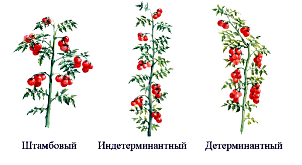 - superdeterminētas vai īsas - zema auguma kultūras ar agru nogatavošanās periodu gan siltumnīcā, gan dārza dobē.