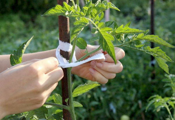Lai sāktu darbu, piesieniet krūmu pie droša balsta. Pirms stādīšanas vislabāk ir iedzīt zemē koka mietiņus un pēc tam piesiet augus pie tiem ar virvi vai auklu (derēs arī strēmelēs sagriezti auduma atgriezumi).