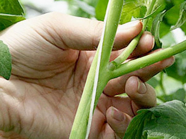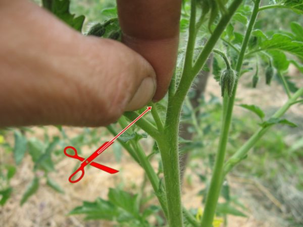 Šajā gadījumā ir grūti atšķirt sānu dzinumu no īstā stublāja. Tāpēc ņemiet vērā: dzinums visbiežāk aug no pirmā ziedu ķekara. Siltumnīcā vislabāk ir veikt šo darbību no rīta, jo šajā diennakts laikā sānu dzinumus ir viegli noņemt. Turklāt vienas dienas laikā no noņemšanas nebūs ne pēdas! Lai novērstu dažādu slimību izplatīšanos starp augiem, uzmanīgi noņemiet nevēlamo dzinumu, izvairoties no tā sulas nokļūšanas uz rokām.