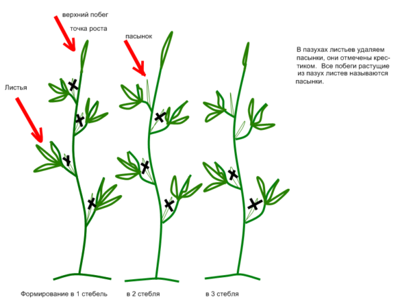 Lai izveidotu trīsstumbru krūmu, jāatstāj dzinums, kas izveidojās zem pirmā ziedu ķekara, un viens spēcīgs, ātri augošs dzinums. Lai nodrošinātu veiksmīgus rezultātus, šķipsnojot tomātus, jāņem vērā tomātu šķirnes specifiskās īpašības. Katrai šķirnei ir savas īpašības.