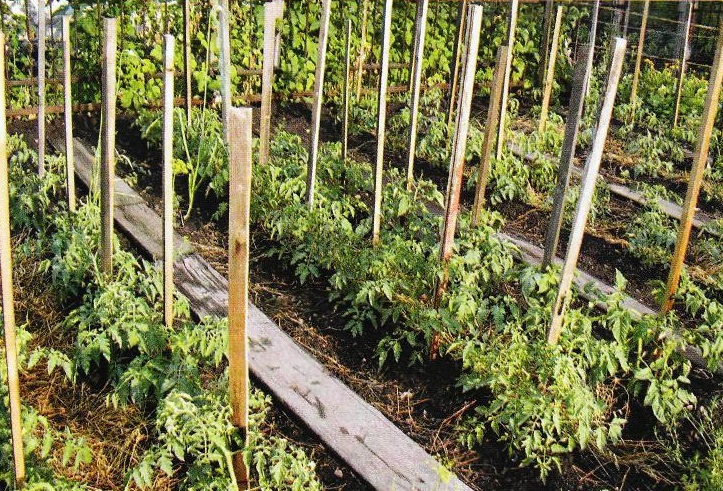 - Daudz ērtāk ir rūpēties par tomātiem, noņemt sānu dzinumus un novākt ražu, ja krūmi ir sasieti.