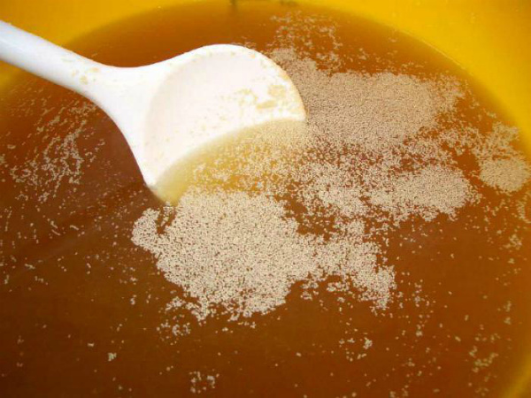 Rauga izmantošana mēslojuma pagatavošanai prasa minimālas pūles, un pati metode ir ļoti vienkārša. Vienam spainim ūdens (apmēram 10–11 litriem) pievienojiet 20–25 gramus rauga. Pēc tam maisījumu rūpīgi samaisiet un pirms tomātu stādīšanas atstājiet siltā vietā uz 24 stundām, lai tas fermentētos. Ja vēlaties paātrināt rauga fermentācijas procesu, šķīdumam varat pievienot dažas ēdamkarotes cukura (pietiek ar 3 ēdamkarotēm). Tas pastiprinās efektu.
