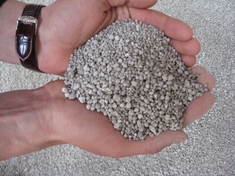 - Granulēts. Iegūts no vienkārša superfosfāta, veidojot granulas. Tam ir laba plūstamība, kas atvieglo lietošanu. Satur līdz 50% fosfora oksīda un aptuveni 30% kālija sulfāta.