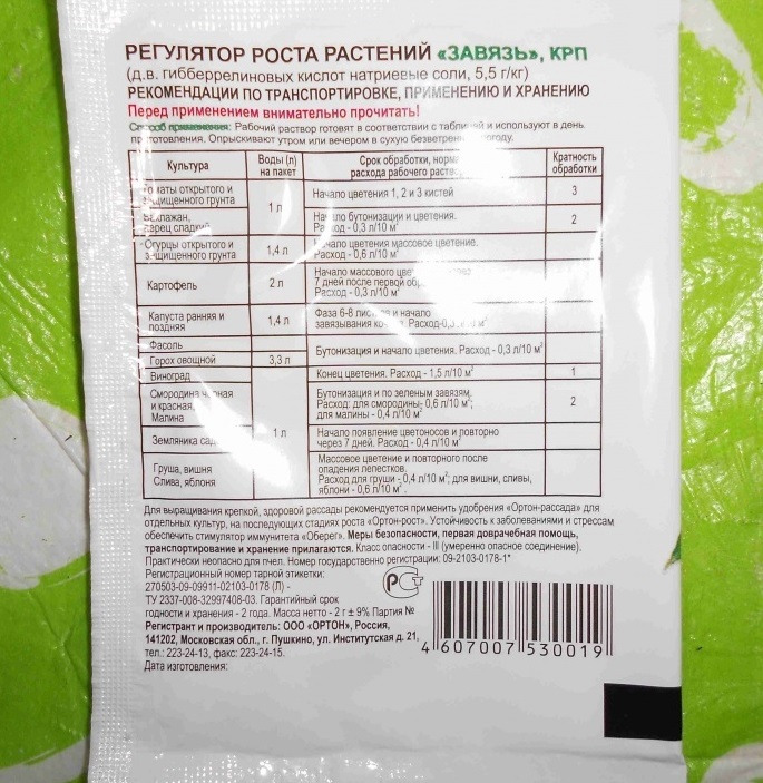Tomātu "olnīcu" preparāts - lietošanas instrukcija