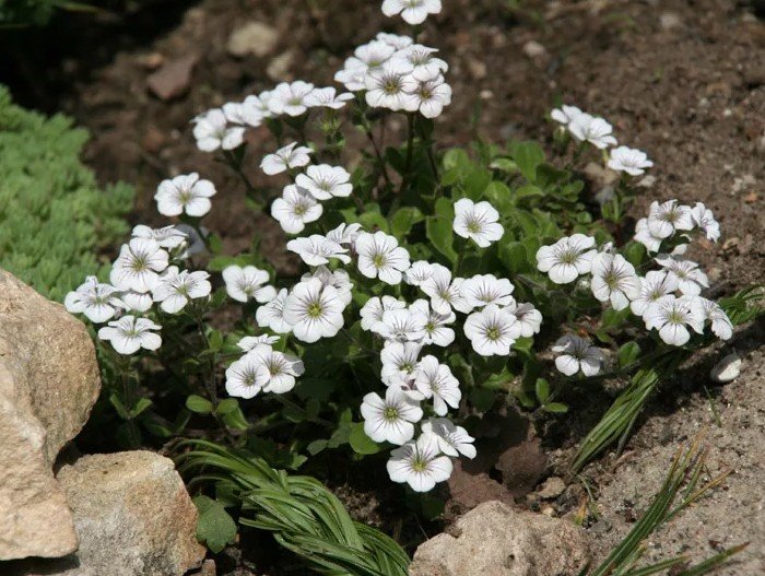 Šis zemais augs (līdz 15 cm augsts) ir cēlies no Himalajiem. Tas ir izplatīts savvaļā un tiek izmantots dārzu dizainā, lai dekorētu akmensdārzus un apmales. Zālaugu pamežs ātri izplatās un pārklāj virsmu. Ziedi ir vienkārši, ar 5 vai 6 ziedlapām, maigi balti ar rozīgām vai ceriņkrāsām dzīslām. Tas zied no maija līdz jūnija beigām.