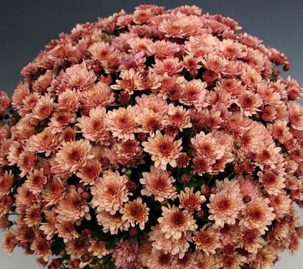 Šī ir vidēji ziedoša šķirne. Pirmie pumpuri parādās ap septembra vidu. Atkarībā no laika apstākļiem tā var ziedēt līdz oktobra beigām vai novembra sākumam. Krūma maksimālais augstums ir 50 cm. 'Branfountain Salmon' ziedi ir pildīti. Ziedlapiņas ir rozā koraļļu un laškrāsas.