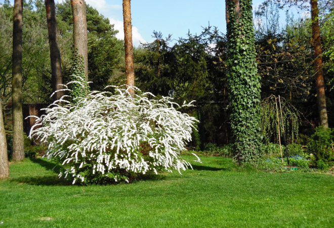 Spiraea vanhouttei ainavu dizainā