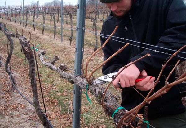 - Jaunu vīnogulāju vidēja intensitātes apgriešana. Katrs vīnogulājs jāapgriež tā, lai atstātu ne vairāk kā astoņus pumpurus. Šī metode palīdz augam saglabāt salizturību;