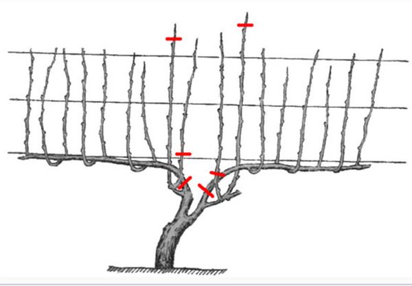 Vēl viena iespēja ir tā sauktā dārza vīnogu formatīvā apgriešana, kas ietver rudenī stādīta krūma veidošanu. Tradicionāli šī procedūra jāsāk, pirms vīnogulājs sāk aktīvi tecēt sulu: vīnogas, kas apgrieztas vēlāk nekā noteiktajā laikā, neizbēgami kļūs slimas.