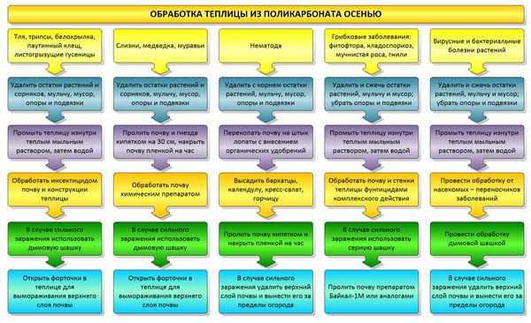Lai novērstu slimības un kaitēkļus, jums jāzina, kā pareizi uzlabot augsni, kā arī aizsargāt siltumnīcas korpusu un pašu struktūru.