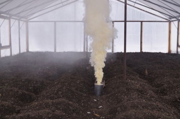 Sagatavoto šķīdumu ielej speciālā smidzināšanas pudelē, no kuras izsmidzina siltumnīcas struktūru.