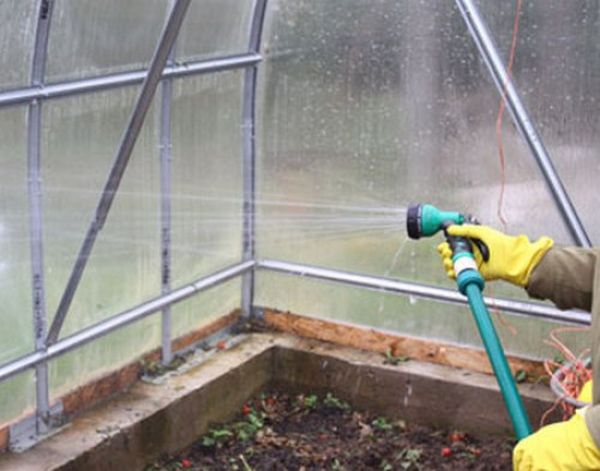 Pēc tam siltumnīcas konstrukcijas virsma jādezinficē, izmantojot Bordo maisījumu vai īpašu pretsēnīšu un pretsēnīšu līdzekli. Veicot šo darbu, noteikti valkājiet aizsargtērpu un respiratoru.