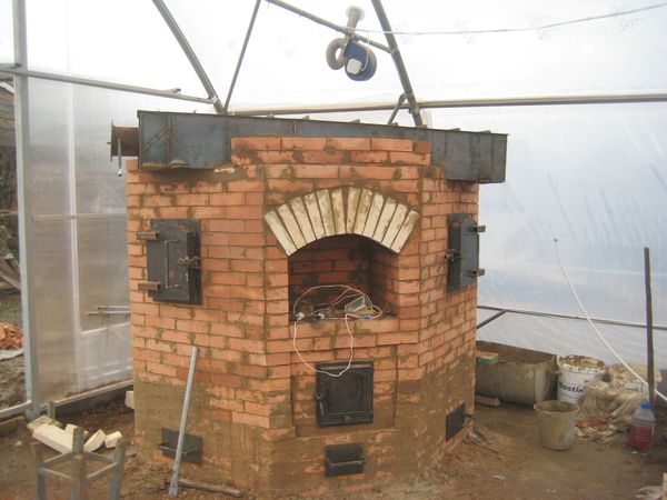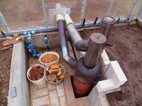Var arī uzbūvēt krāsni, kas aprīkota ar tā saukto dūmvadu: horizontālu skursteni dobju apsildīšanai. Pamatam jābūt izgatavotam no dzelzs un caurulēm. Kurtuvei un skursteņa izvadam jāatrodas siltumnīcas pretējos galos.