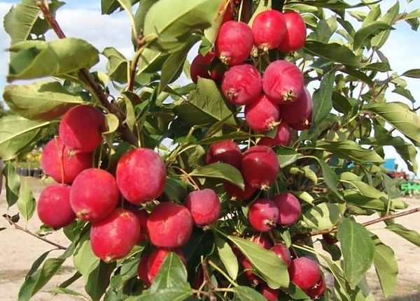 Vērts atzīmēt, ka ābelei visā augšanas sezonā ir ļoti dekoratīvs izskats. Ziedēšanas laikā tās zari ir blīvi klāti ar baltiem ziediem ar rozīgu nokrāsu, dažreiz pilnīgi rozā. Rudenī ziedu vietā parādās daudzi sarkanu augļu ķekari, kas diemžēl nav īpaši lieli vai saldi. Āboli sver vidēji 15–20 g; tie ir olveida un ar iegarenu kātiņu, kas tos stingri piestiprina pie zariem. Mīkstums ir nedaudz stingrs, vidēji sulīgs un ar viegli skābenu, vīnam līdzīgu garšu.
