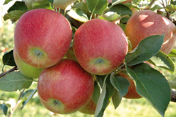 - Sarkani, bet izbalējušākas krāsas āboli. Tie ir 'Jonica', 'King Jonagold' un 'Goldpurple'.