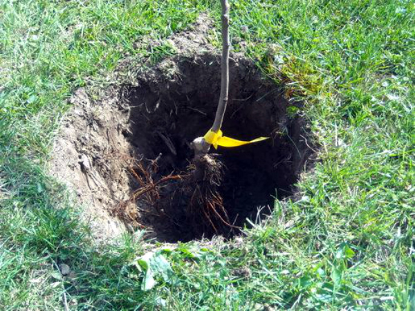 Lai noteiktu, cik stādu var iestādīt stādījuma vietā, ir vērts to iezīmēt. Paturiet prātā, ka ābeles sakņu sistēma neizbēgami paplašināsies. Apmēram nedēļu pirms plānotās stādīšanas izrokiet vairāk nekā 90 cm dziļu bedri. Piepildiet to ar humusa, augsnes un minerālmēslu maisījumu. Nedēļas laikā stādīšanas bedres malām būs laiks izžūt un sablīvēties. Bedres diametrs ir tieši atkarīgs no stādu sakņu sistēmas lieluma. Vidēji tas svārstās no 55 līdz 70 cm.