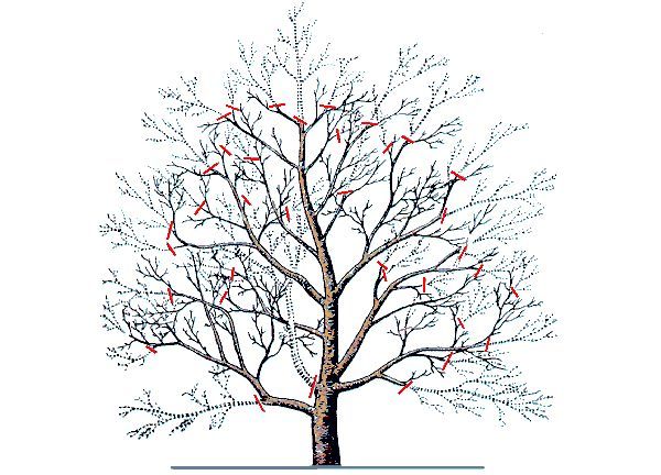 - Noteikti noņemiet zarus, kas aug no vainaga uz iekšu, lai tie netraucētu jauno dzinumu augšanu.