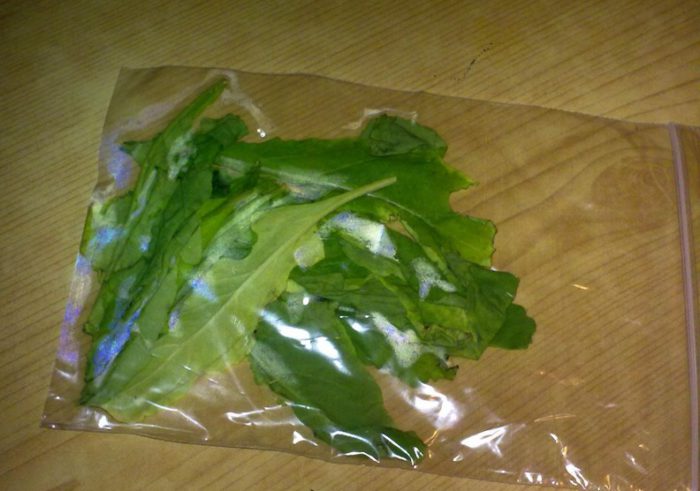 Uzglabājot augu saldētavā, lapas var sasaldēt veselas, nevis sagriezt mazos gabaliņos. Lai to izdarītu, rūpīgi noskalojiet tās ar ūdeni un novietojiet uz papīra dvieļiem. Ļaujiet lapām šādā veidā nožūt. Uz to virsmas nedrīkst palikt mitrums, jo tas negatīvi ietekmēs produktu.