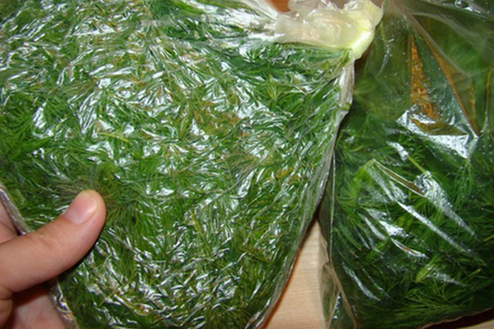 Sīki sagrieztu diļļu sasaldēšana. Nomazgājiet un nosusiniet garšaugus. Pēc tam sasmalciniet tos, pārlieciet traukā un uzglabājiet saldētavā.